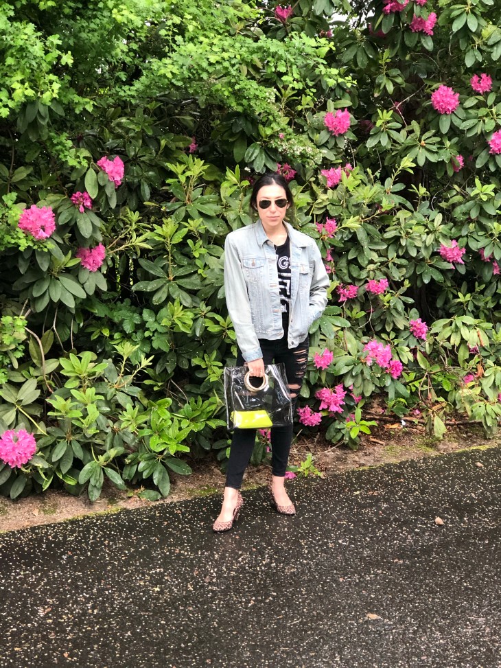 At the end of last summer, I purchased a transparent vinyl handbag from a secondhand store and to add contrast I paired it a small neon yellow wristlet wallet. You can find some bags in this style that are sold with the contrasting inside which is cool. But if not, that just makes the combination possibilities endless. Check out how I styled it below.