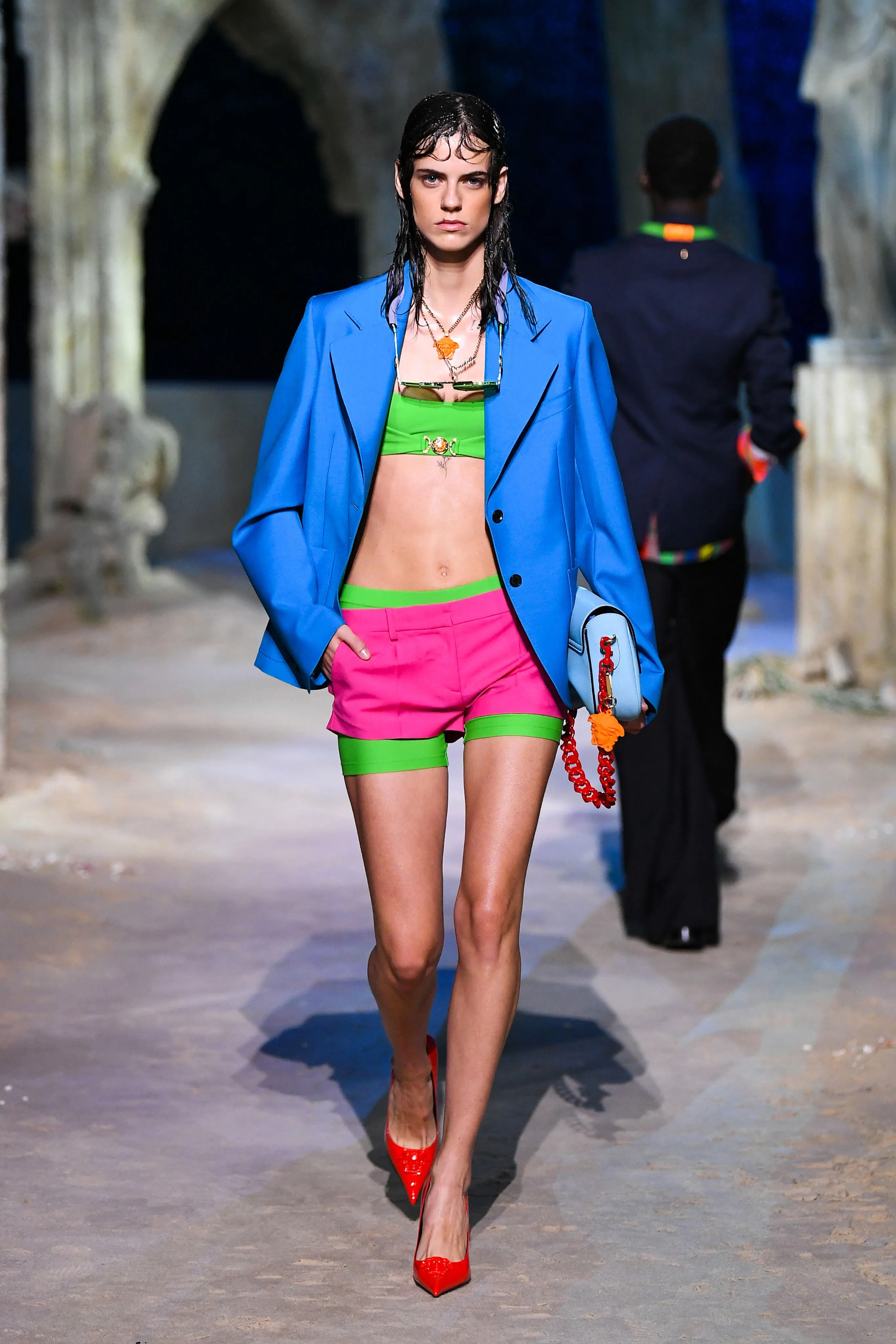 But if you want to stand out at the next summer event, pair highly saturated, neon pieces together. The sea-inspired SS21 Versace runway is an exceptional reference point for this bold styling.