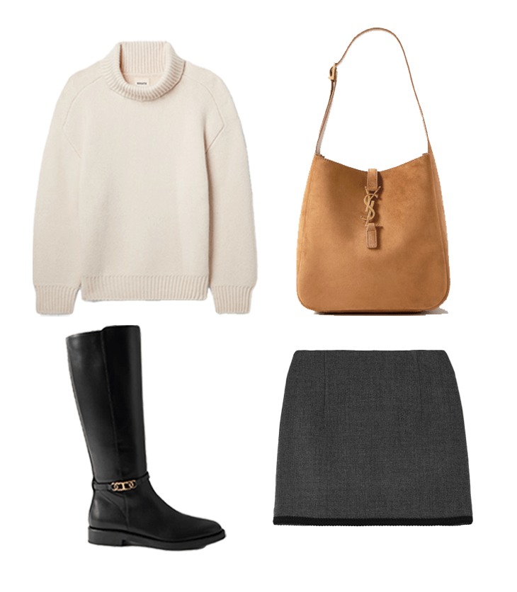 I will leave you with the must have for the season: a pair of leather riding boots. When you switch over from sandals to boots, it really seals the beginning of fall. A pair of black leather knee-high boots offer a sleek and refined option to be paired with a skirt or jeans tucked into them, they could be a stiletto like these by Reformation or with a block heel like these by Anine Bing.